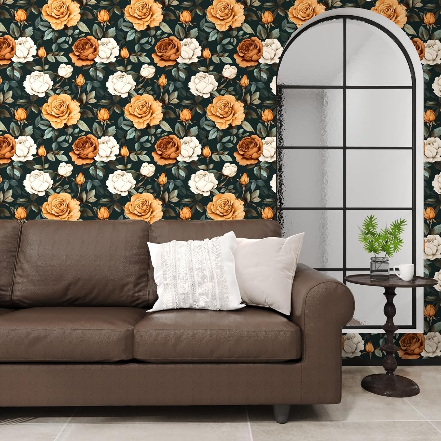 - ✦Features: Dark floral wallpaper made of high quality, durable vinyl with a pattern of red and yellow flowers. 17.5 inches wide by 118 inches long, covers 14.5 square. This boho wallpaper also waterproof and easy removable.